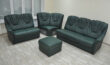 Кожаный уголок с пуфом. Темно-зеленый.